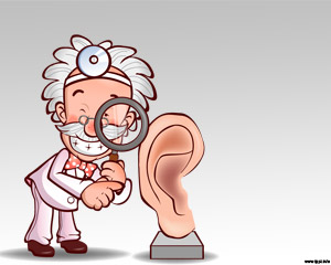 Acto seguido, me coloqué la vincha ajustable que soporta el espejo: ese disco plateado y cóncavo con un orificio en su centro que permite, enfrentando la fuente de luz, iluminar profundamente. Prendí ésta, tomé un espéculo de la caja abierta de otorrino y se lo introduje con suavidad en el conducto auditivo externo del lado afectado. Realicé algunas maniobras con mi cabeza y la del paciente hasta lograr que el haz de luz me iluminase donde yo quería, esperé unos cuantos segundos en silencio tratando de observar y cambié a otro espéculo de calibre menor, repetí la maniobra, siempre muy callado y sin lograr ver absolutamente nada, como era de esperar en alguien que no posee el entrenamiento adecuado. Por último, me quité el espejo y apagué la luz, todo hecho con mucha parsimonia, lo que multiplicaba las expectativas, y ante la mirada ansiosa e inquisidora de los dos, les solté con actitud calma y muy profesional: