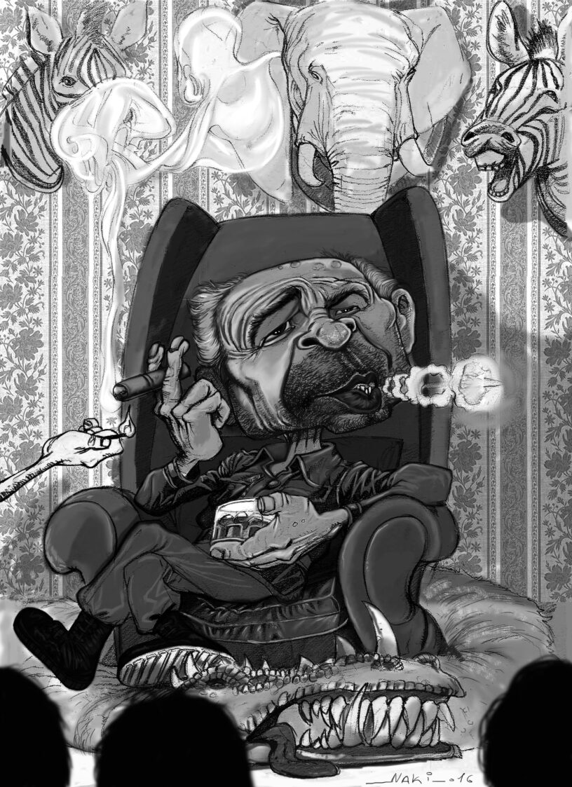 «Fue hace muchísimos años, yo creo que como cuarenta. Estábamos en Kasawa, un pueblo en el norte de Zambia, abajo del Congo. Hacía unos días que viajábamos. Seguíamos el valle del río Luangwa, en el corazón de la sabana africana. Nos movíamos en una camioneta medio destartalada con tracción integral que manejaba el profesional, un lugareño que te organiza la salida y te protege si fallás tu tiro, yo a su lado con mis armas y dos negritos tirando a betún sentados atrás que nos asistían en toda la excursión. Sabíamos que estábamos en el territorio de la manada del Msoro Monty, un león antropófago…»