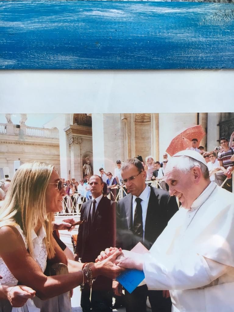 Gaby tuvo una inspiración hermosa, de conmovedora y profunda generosidad. Le ha pedido al Papa que bendiga sus manos, sus diestras manos de partera.