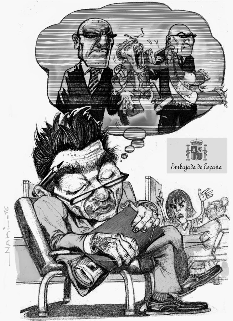 Para empezar “DATOS DEL NACIDO”, ¿a quién carajo se refieren? Supongo que debo de ser yo, pero, en ese caso, ¿qué debo consignar en los renglones de “primer apellido” y “segundo apellido”? Pasemos al segundo ítem, “DATOS DEL NACIMIENTO”, este es fácil hasta que llego a “Tomo”; “Página”; “Núm.”, revuelvo los papeles, separo mi partida y de estos tres datos, ni noticias; ¡cagamos!, me van a hacer volver, mejor lo dejo en blanco y me tiro el lance. Sigamos con el formulario: “MATRIMONIO DE LOS PADRES” tiene un primer renglón en blanco con un (6) que remite a INSTRUCCIONES. Leo con atención: “(6) Indicar Existe o No Existe”; ¡que complicados son estos gallegos! ¿A qué mierda aluden con “Existe” o “No Existe” ?, ¿al casamiento?, ¿a mis viejos?, ¿qué carajo le pongo? Con esta sí me cagan. Miro otra vez la hora. ¿No me habré olvidado la guita? Me palpo el bolsillo y respiro; busco las fotocopias de mis documentos y las reviso con minuciosidad, ¿alcanzarán las dos primeras hojas? Ya veo que estos hijos de puta me piden alguna otra de atrás… ¡Epa! ¿y esta manchita blanca en la cara que tiene el pasaporte?, ¡recontracagamos! Así, me lo rebotan. Sacudo la cabeza con resignación, mordisqueo mis labios, pero me tranquilizo, termino el café, pago y salgo a la calle, ya debe estar el Cónsul esperándome.